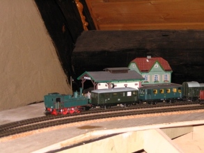 Als der Aufbau unserer analogen Anlage im wesentlichen abgeschlossen war mussten wir aber feststellen, dass sie nicht mehr transportabel war. Das Treppenhaus vom Dachgeschoss der Amtsfischerei bis in den Hof ist ganz schön eng. Also überlegten wir uns eine zweite Anlage aufzubauen welche wir auch mal zu Ausstellungen mitnehmen konnten. Da inzwischen auch die Möglichkeiten der digitalen Steuerung immer weiter fortgeschritten waren, sollte auch unsere neue Anlage eine digitale Steuerung bekommen. In zähen Diskussionen wurde über den Gleisplan entschieden. Es sollte eine 2-gleisige Hauptbahn mit 1-gleisiger Nebenbahn werden. Nun konnte der Bau beginnen.